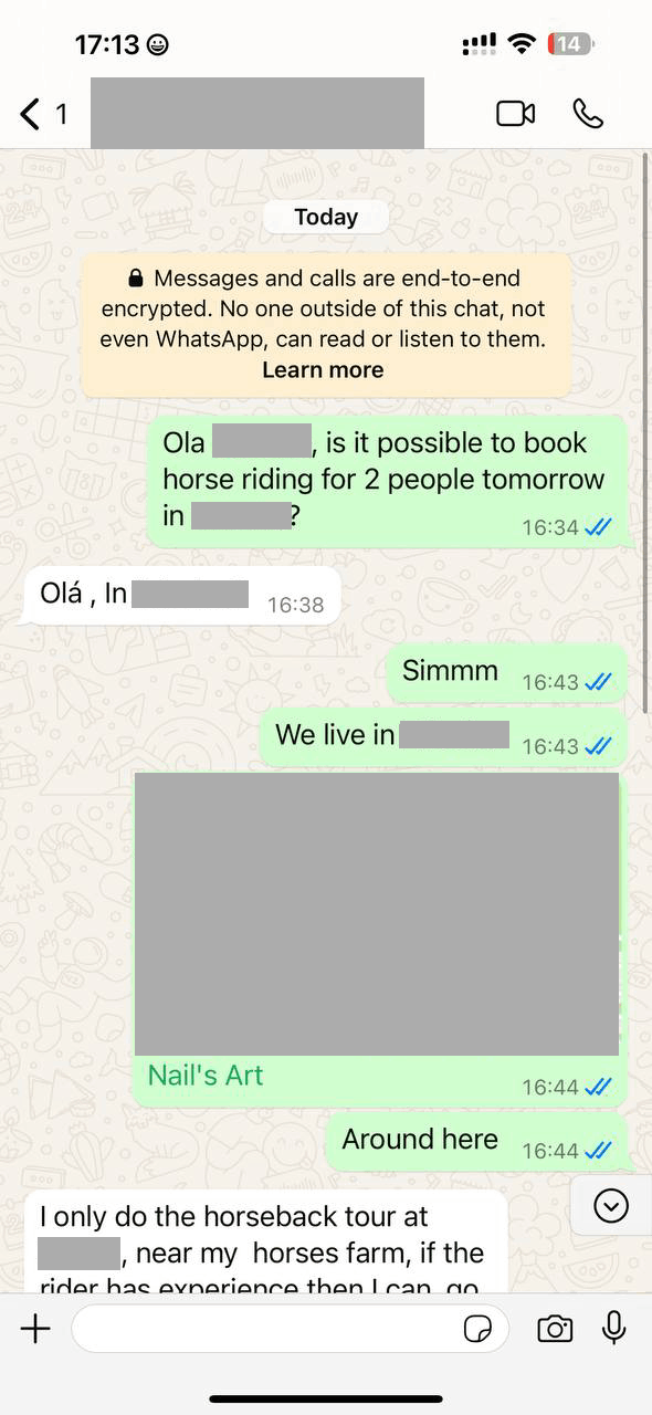 After asking he explains where his farm is but also tells me his horses are not safe to ride if we are beginners:
